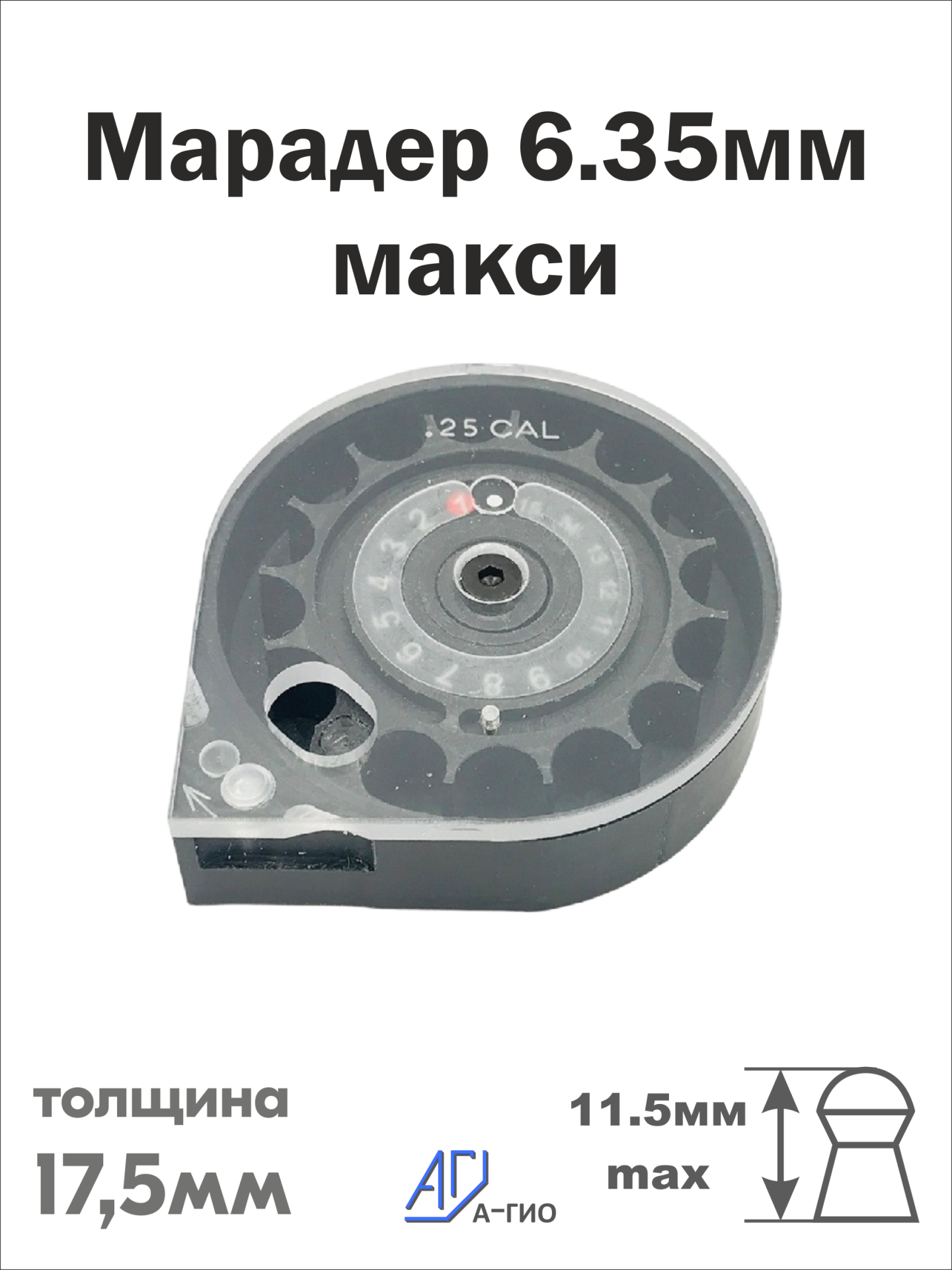 Магазин А-Гио (Agioso) "Марадер 6.35мм макси 17.5мм" (15 пуль)