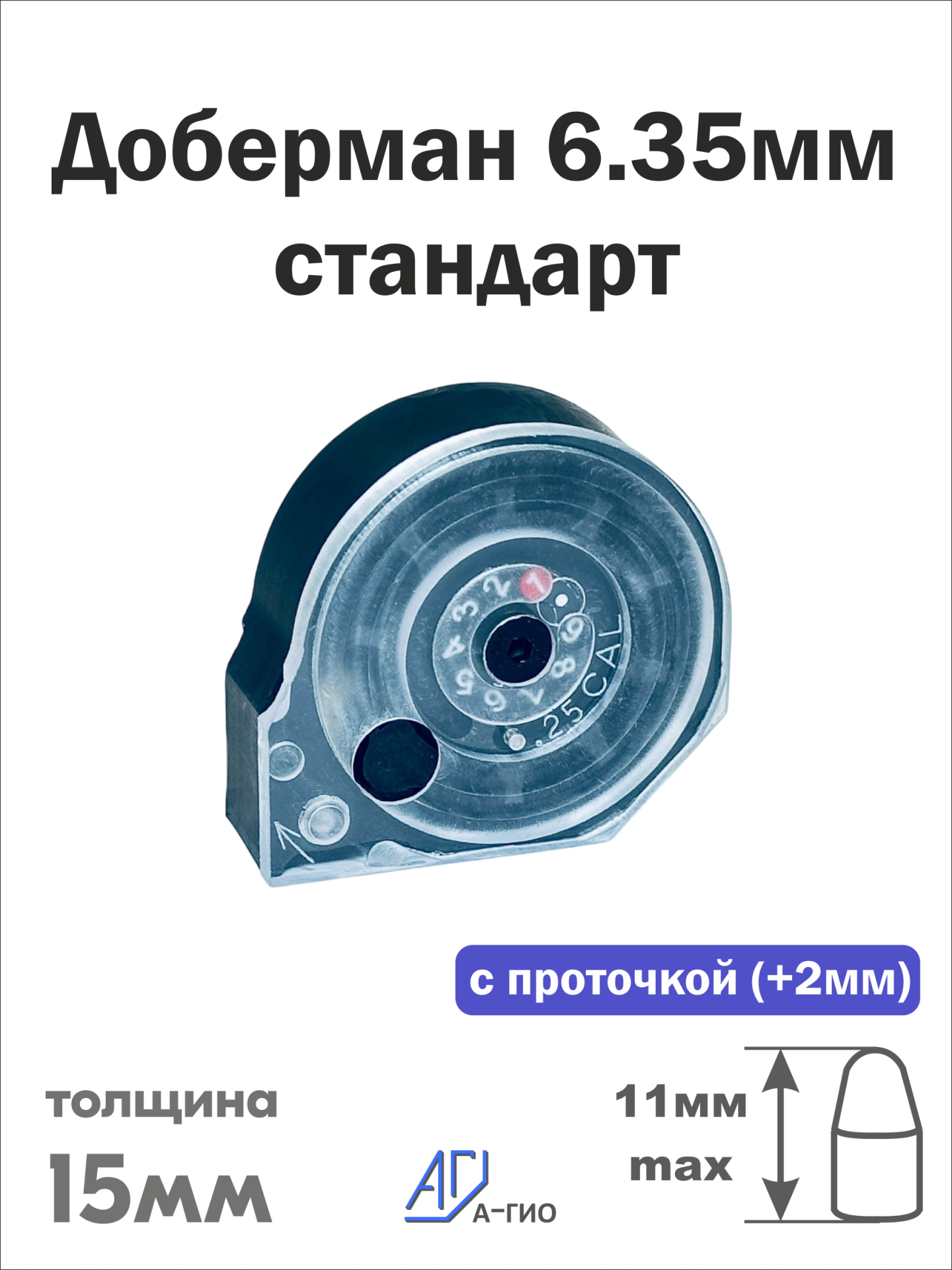 Магазин А-Гио (Agioso) "Доберман 6.35мм стандарт с проточкой" (9 пуль)